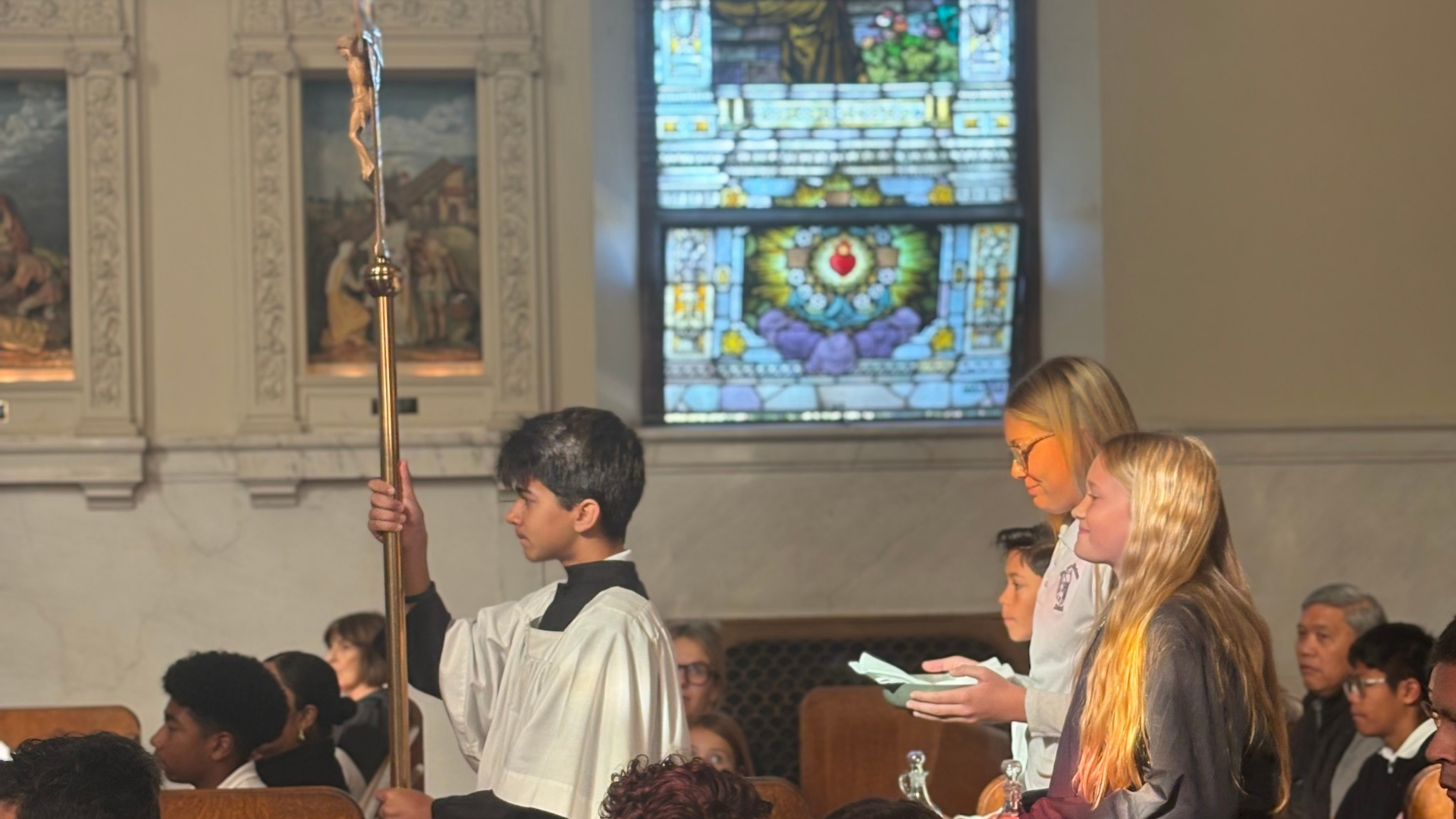Students are encouraged to participate in different acts of service throughout their time here, whether it be in choir, altar service, or giving back to the community.
